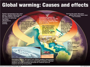 Almost 100% of the observed temperature increase over the last 50 years has been due to the increase in the atmosphere of greenhouse gas concentrations like water vapour, carbon dioxide (CO2), methane (a new study by the Nasa Goddard Institute for Space Studies has found methane is 33 times more damaging if the effects of interaction with other airborne pollutants is included) and ozone. Greenhouse gases are those gases that contribute to the greenhouse effect. The largest